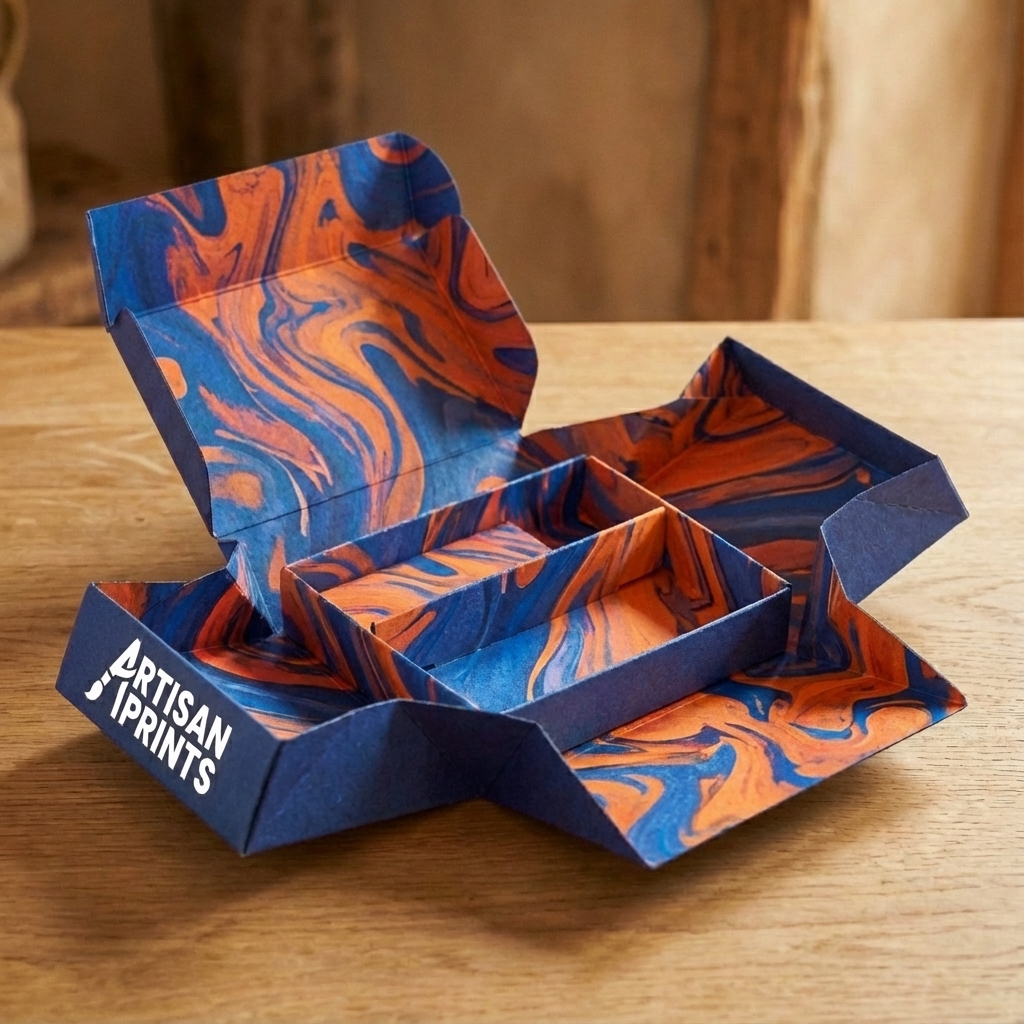 Custom Folding Boxes are printed, cut and glued from a single paperboard sheet, then shipped flat to save space. Each custom folding box pops into shape in seconds, giving you branded packaging for shelf, online orders or gift sets without the bulk of rigid cartons or heavy storage boxes.