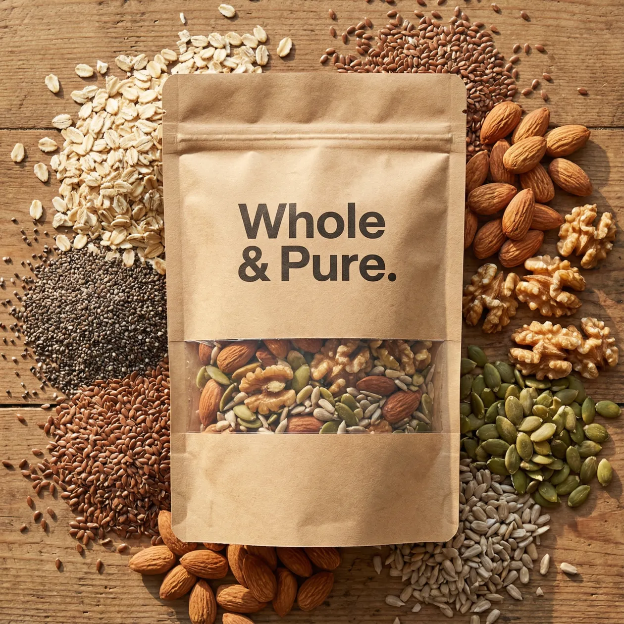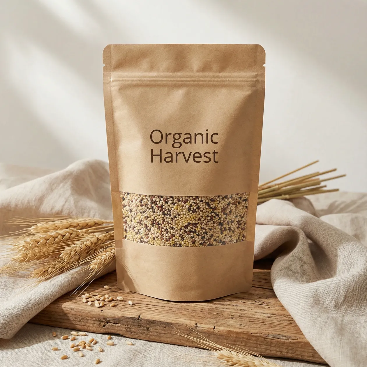 Choose from recyclable, compostable or high‑barrier kraft pouch options depending on your product’s needs. Food‑grade inner layers help guard against oxygen and moisture, keeping snacks, beans and powders fresher for longer, while the kraft exterior sends a clear low‑waste, paper‑based packaging message
