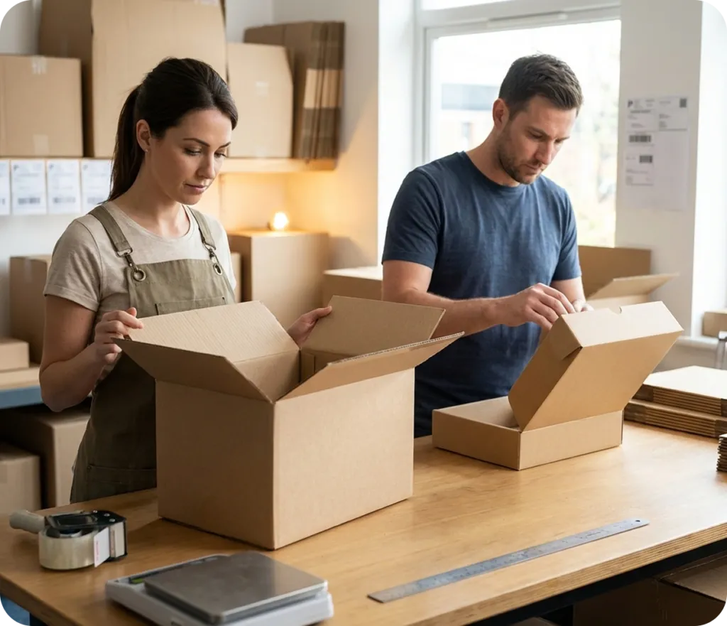 Purchase Shipping Boxes at EcofriendlyPacking wether your product require an RSC Box or an roll end truck front box also commonly called die cut box or Postage Boxes. We can help you identify the correct box shape and size ensuring durability and protection of your merchandise during transit.